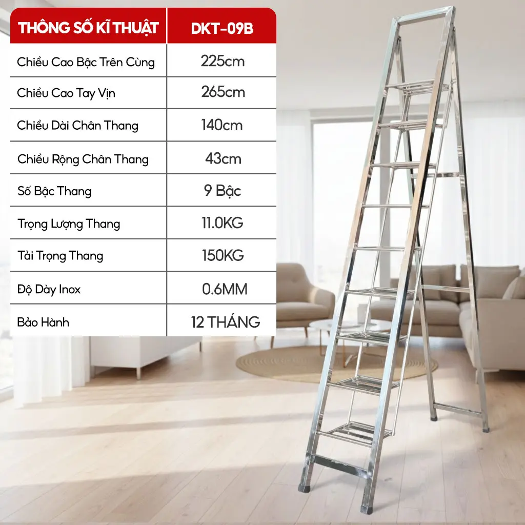 THÔNG SỐ THANG GHẾ BÀN INOX DKT-09B