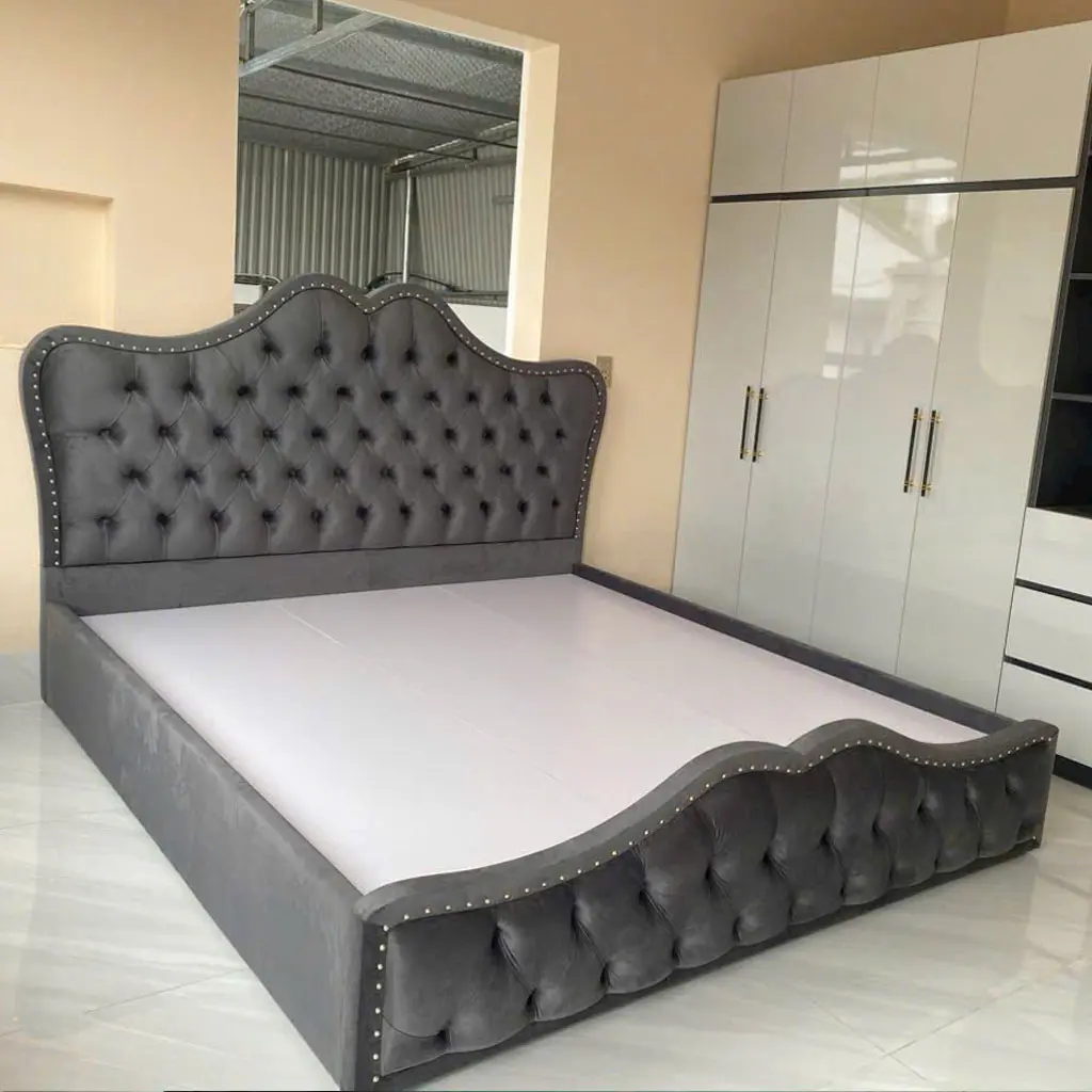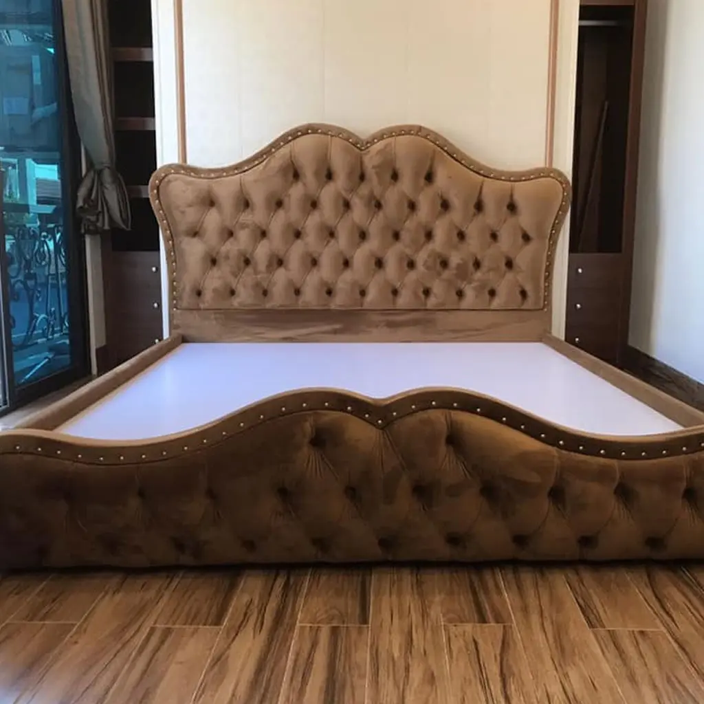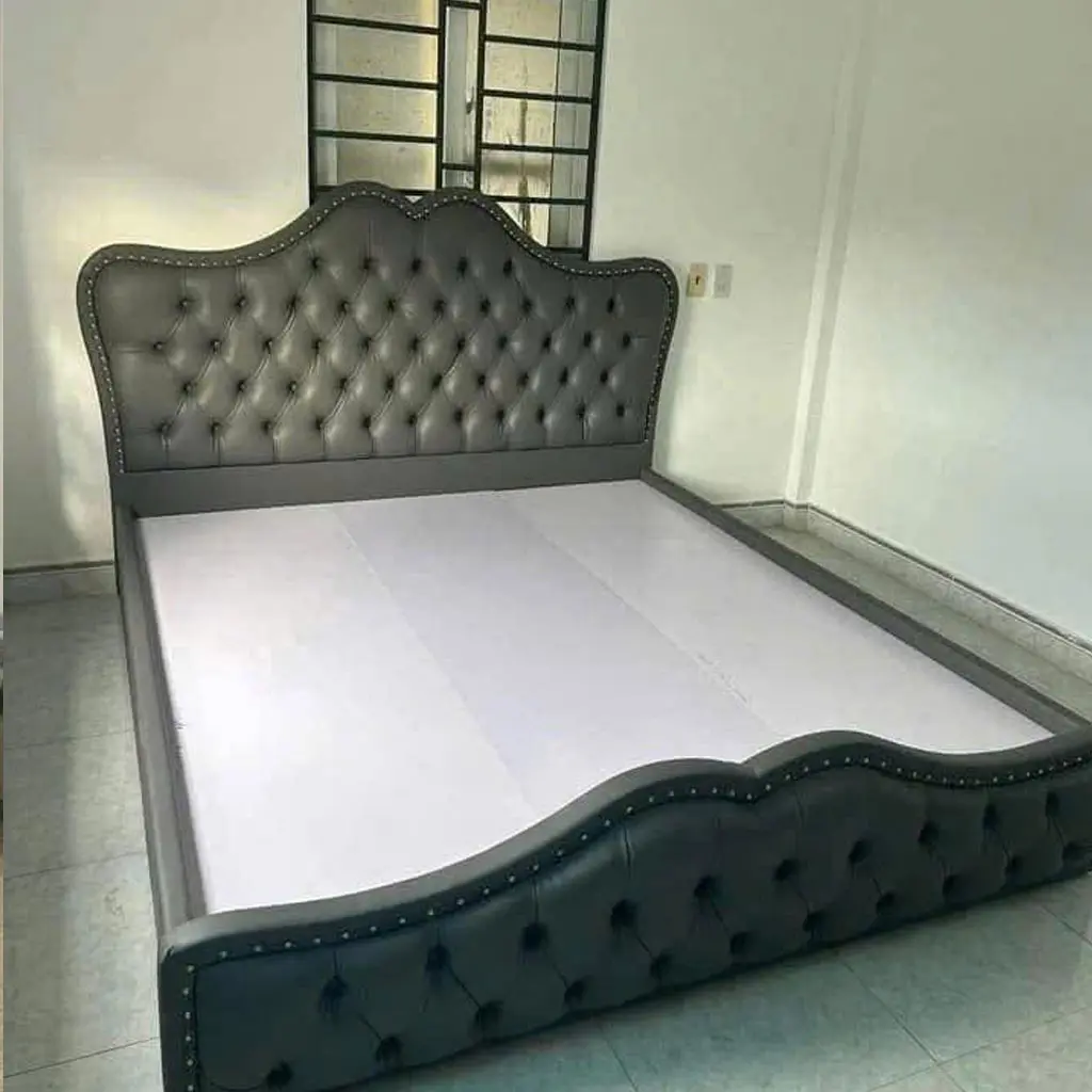 – Chân giường ngủ bọc nỉ thấp lại được làm bằng chất liệu gỗ tự nhiên giúp giường thêm sự vững vàng hơn; tạo chỗ nằm thư giãn thật thoải mái và chắc chắn cho gia chủ khi ngủ nghĩ, thư giãn. Đầu giường được thiết kế dạng vòm, bọc nệm kết hợp chần nút (rút múi) đây là kiểu thường thấy trong các giường tân cổ điển gây ấn tượng bởi vẻ đẹp đặc biệt tinh tế, sang trong cho chiếc giường ngủ khi bày trí bên trong không gian nội thất.