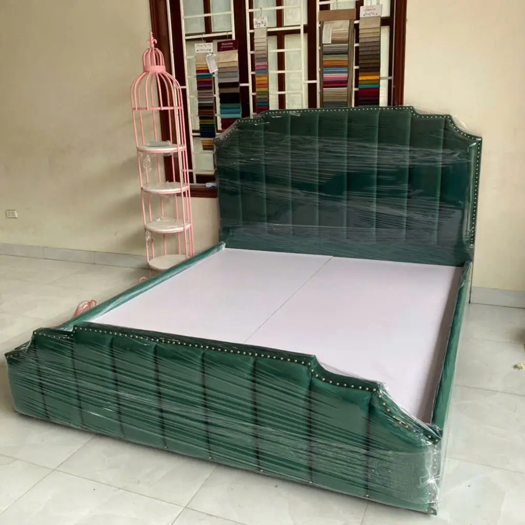 – Chân giường ngủ bọc nỉ thấp lại được làm bằng chất liệu gỗ tự nhiên giúp giường thêm sự vững vàng hơn; tạo chỗ nằm thư giãn thật thoải mái và chắc chắn cho gia chủ khi ngủ nghĩ, thư giãn. Đầu giường được thiết kế dạng vòm, bọc nệm kết hợp chần nút (rút múi) đây là kiểu thường thấy trong các giường tân cổ điển gây ấn tượng bởi vẻ đẹp đặc biệt tinh tế, sang trong cho chiếc giường ngủ khi bày trí bên trong không gian nội thất.