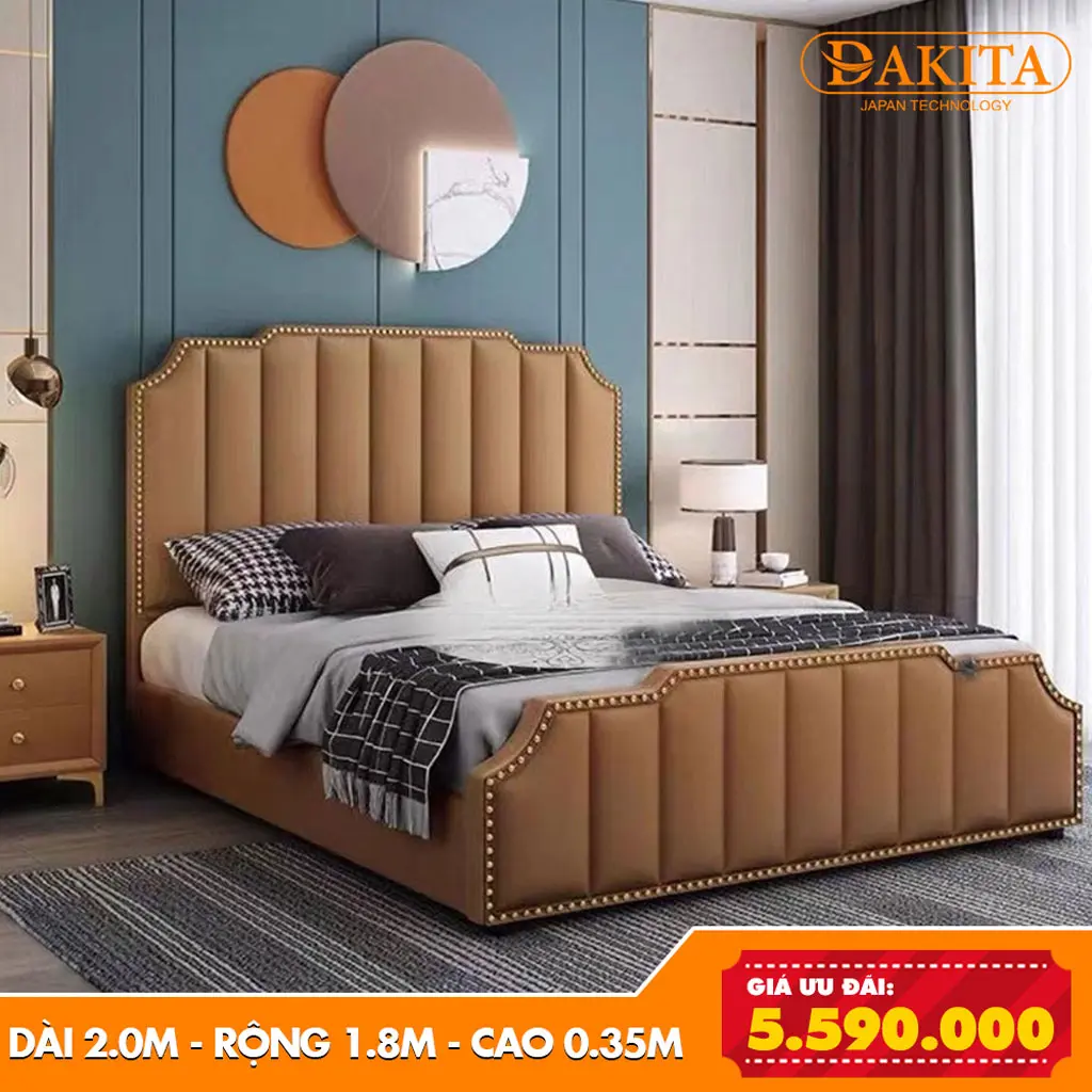 Đừng vội vàng bỏ qua một chiếc giường ngủ có thiết kế phong cách chuẩn decor vừa là một mẫu giường giúp bạn trang trí phòng ngủ của một một cách lung linh nhé. Giường Ngủ Bọc Nệm DAKITA được biết đến nhờ thiết kế sang trọng cùng với những lớp đệm dày và đặc biệt êm mang đến cho bạn một giác ngủ sâu hơn và ngon hơn.