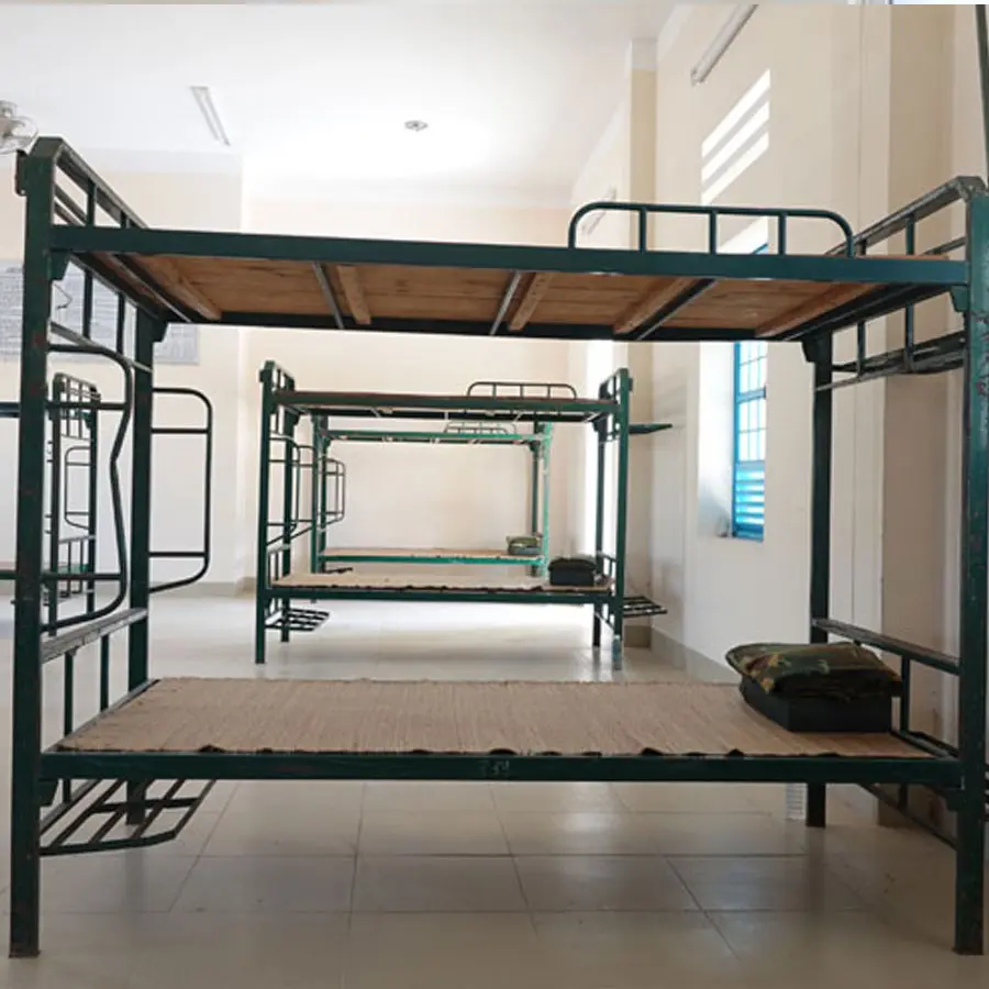 - Khu doanh trại quân đội với điều kiện sinh sống có phần hơi khó khăn cũng như khắc nghiệt của yếu tố môi trường tự nhiên và những va chạm hoặc có nhiều rung động mạnh từ người dùng. Thì giường sắt 2 tầng quân đội được thiết kế kết cấu chắc chắn với nguyên vật liệu bền bỉ, giúp chống chịu tốt những khó khăn đó. Mặt khác, vì tính thích nghi tốt với môi trường nên giường sắt 2 tầng quân đội ngày nay cũng được sử dụng nhiều ở kí túc xá, trường học nội trú.