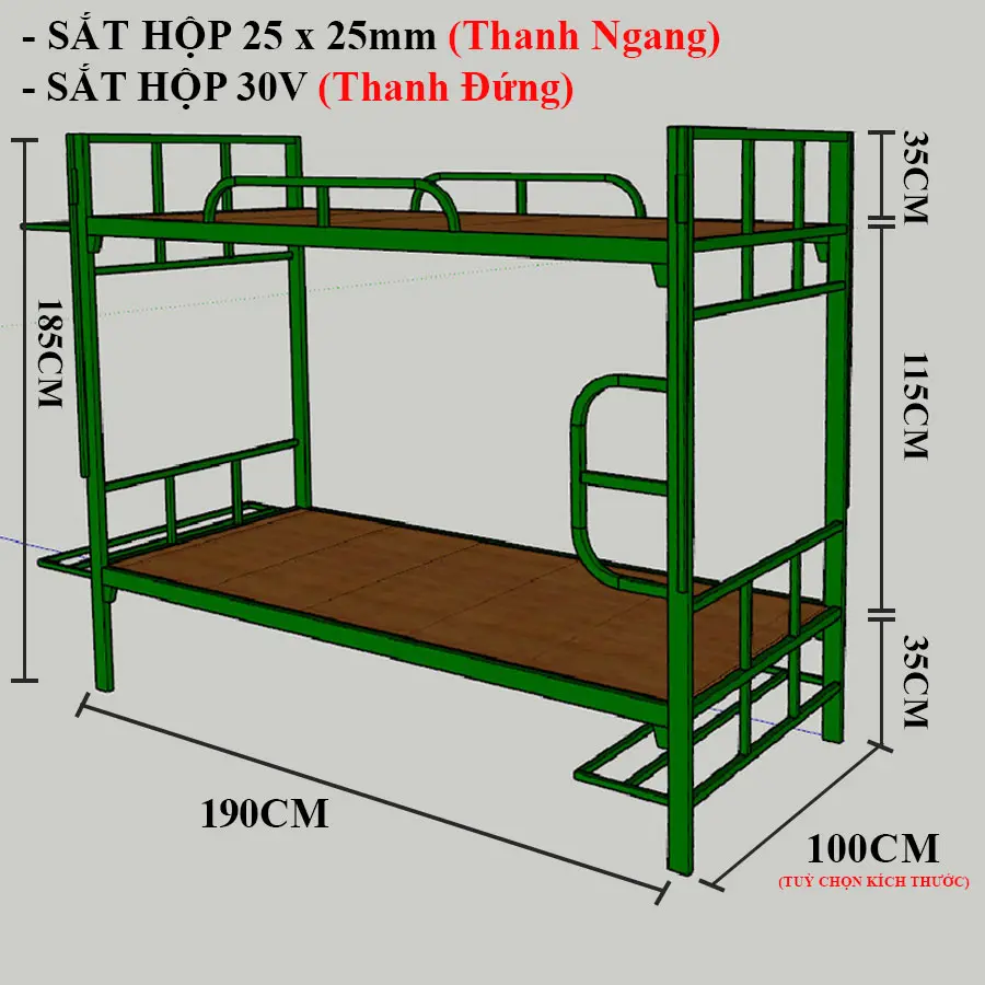 Kích Thước: D x R x C (190 x 100 x 185cm ).Sơn tĩnh điện màu xanh Quân Đội .Vật liệu: Sắt hộp Chữ Nhật, Hộp Vuông 25 x 25