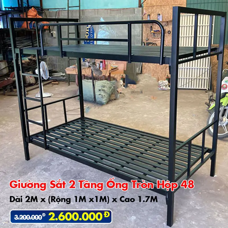 Giường sắt 2 tầng sơn đen giá rẻ có nhiều ưu điểm giúp tiết kiệm diện tích phòng, kích thước nhỏ mà vẫn cho 2 người sử dụng được.