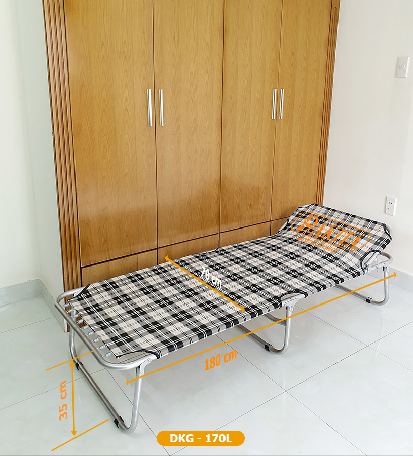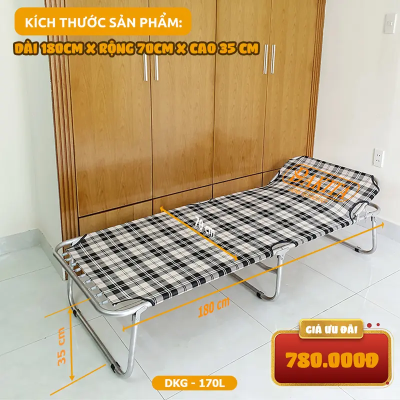 Giường xếp cao cấp DAKITA DKG-170L mẫu giường xếp kích thước rộng 70cm dài 180cm cao 35cm được làm bằng Thép 100% sơn tĩnh điện không rỉ sét, thiết kế chắc chắn, có thể xếp gọn dễ dàng, tính cơ động cao.