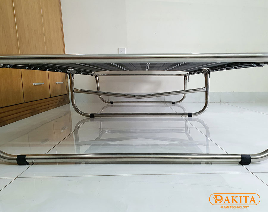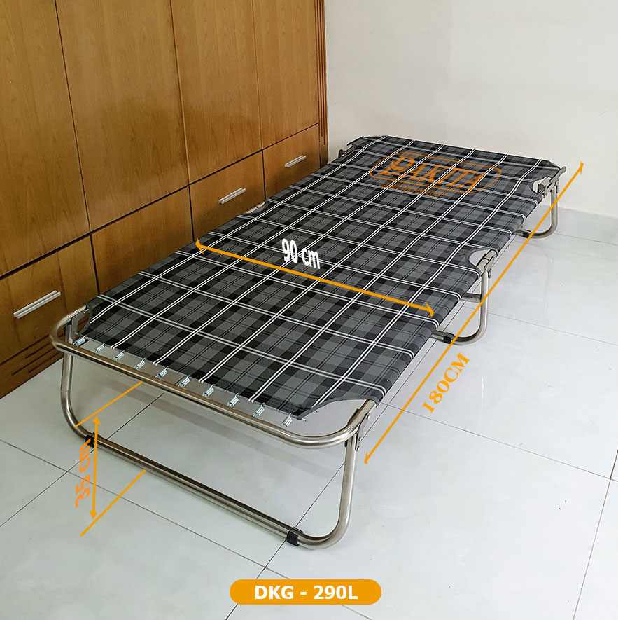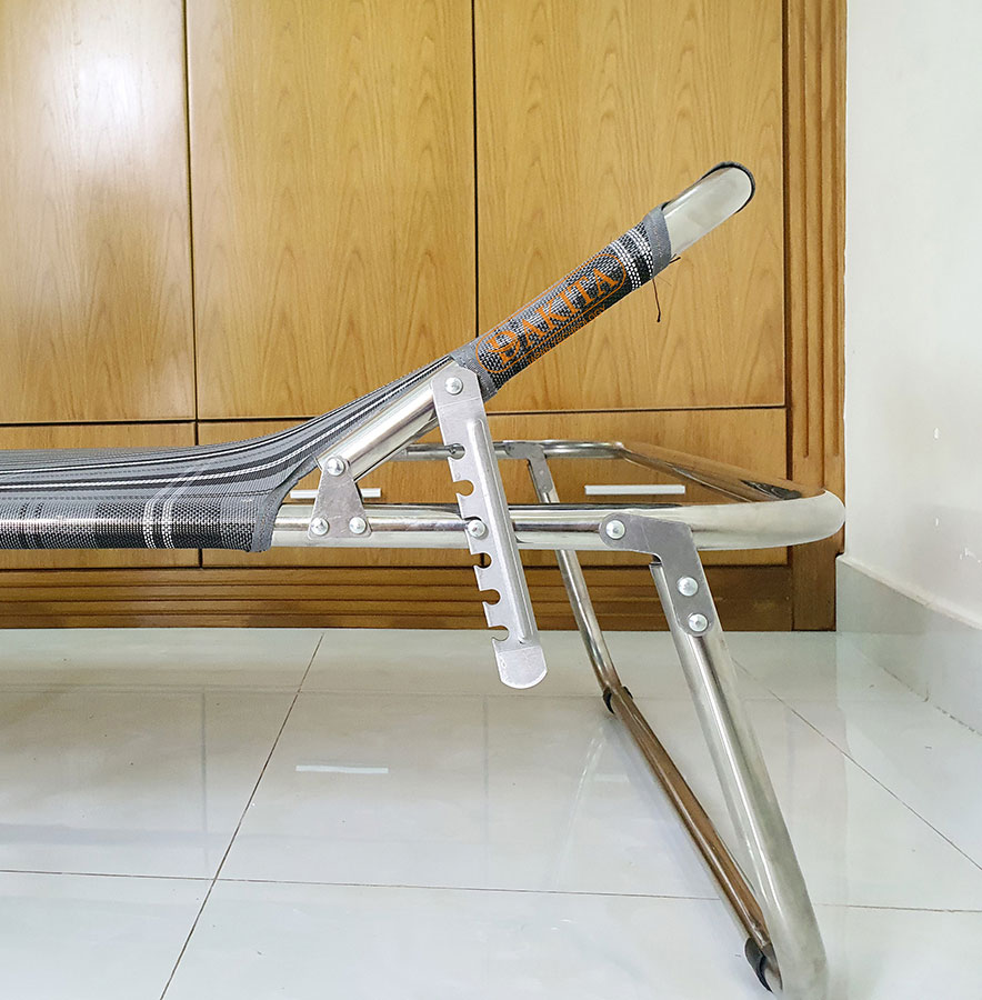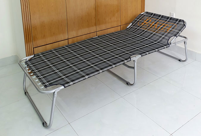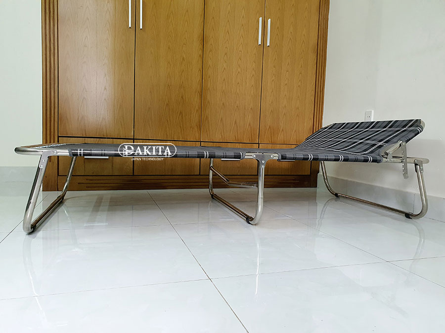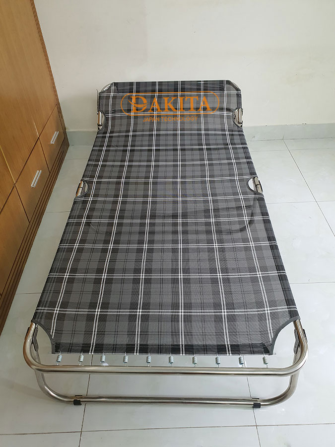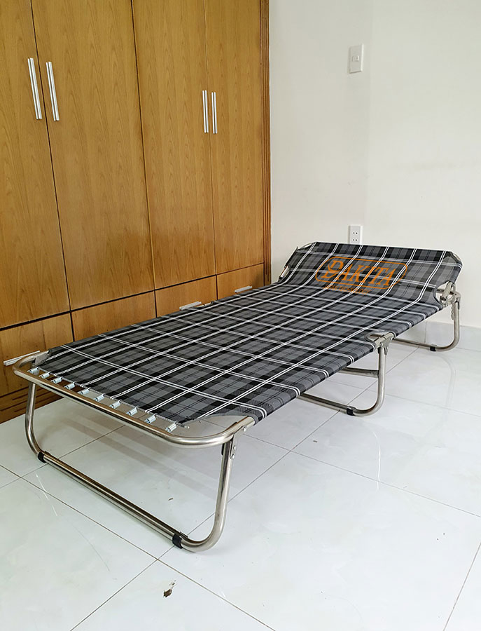Giường xếp cao cấp khung inox khổ rộng, vải lưới nhập ít giãn, không kêu cót két, nằm nghỉ ngơi thoải mái.