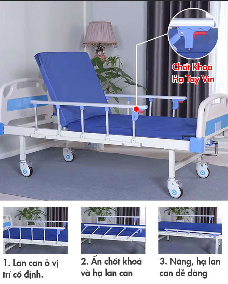 – Hai lan can của giường y tế được làm bằng hợp kim nhôm.