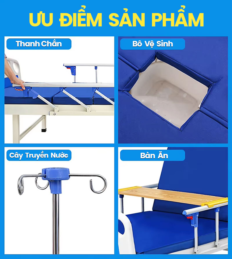 – Tích hợp bàn ăn và bô vệ sinh. Tiện lợi cho người bệnh.
