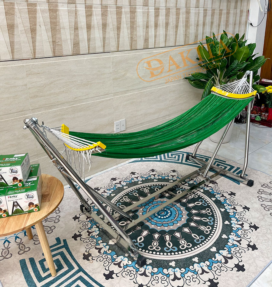 Khung võng Đức Lợi DKV-03 + Lưới võng cán nhựa mềm êm cỡ đại màu xanh Lá