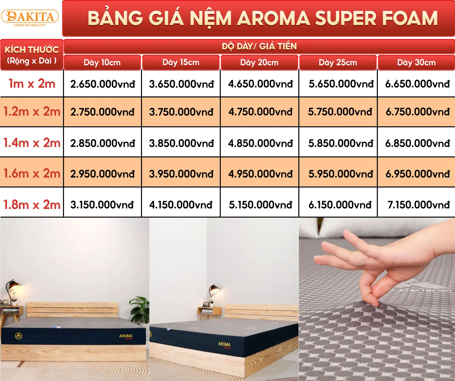 BẢNG GIÁ NỆM KHUYẾN MÃI NỆM AROMA SUPER FOAM