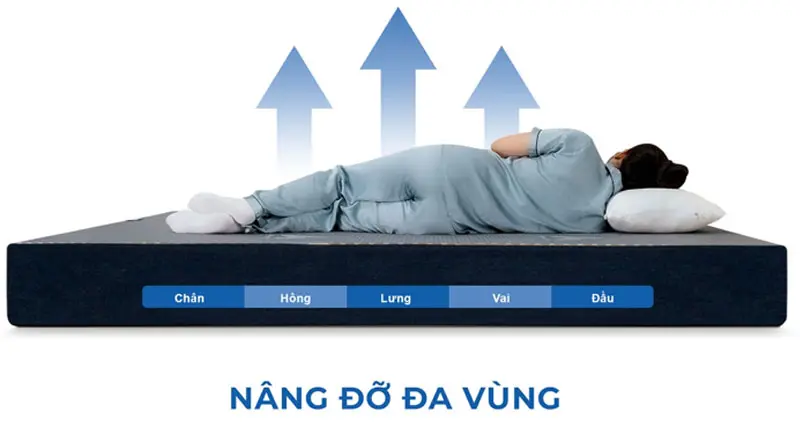 - Nệm có độ êm vừa phải, phù hợp cho những người bị đau nhức xương khớp, với khả năng nâng đỡ tốt và chống xẹp lún hiệu quả.