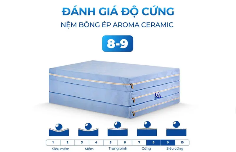 Sản phẩm được sản xuất và phân phối bởi Công ty Nệm Aroma, đảm bảo chất lượng vượt trội và độ tin cậy. Nệm Bông Ép Aroma Ceramic là sự lựa chọn thông minh cho giấc ngủ thoải mái và không gian sống tiện nghi, đáp ứng mọi nhu cầu về chất lượng và tiện ích.