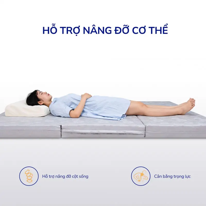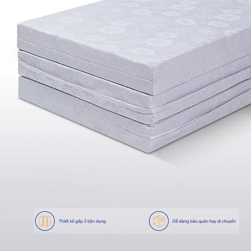 Thiết kế tiện lợi: Nệm được thiết kế gấp 3 mảnh, thuận tiện cho việc di chuyển và vệ sinh.