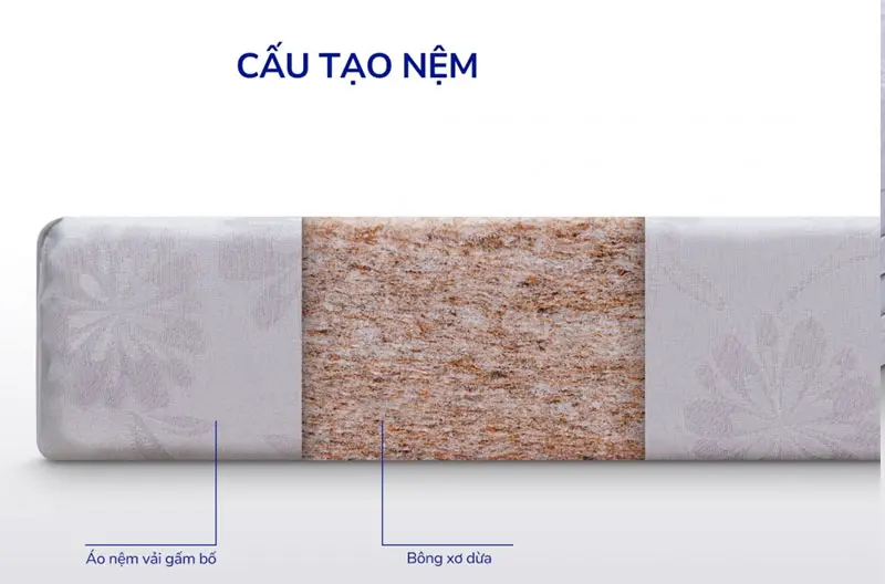 Chất liệu: 100% bông xơ dừa tự nhiên, áo nệm vải xốp nhập khẩu.