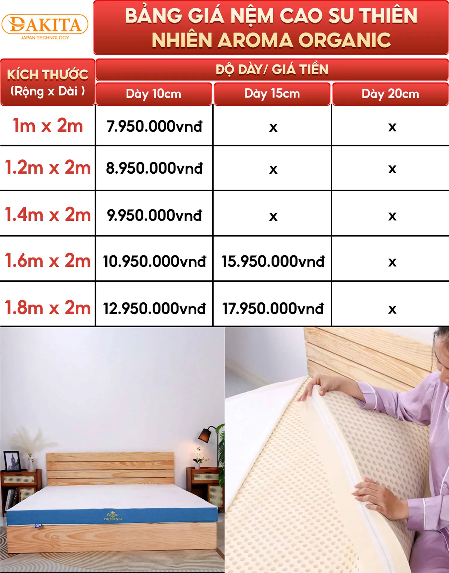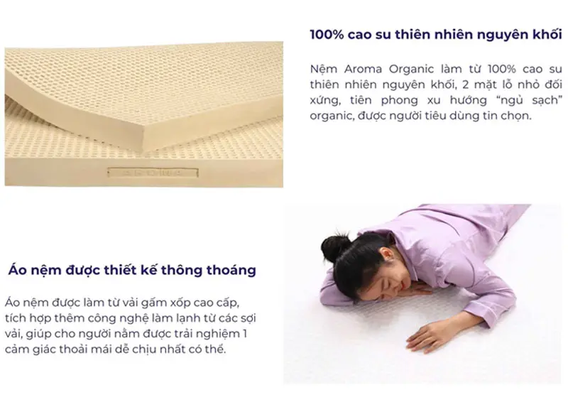 Nệm Cao Su Thiên Nhiên Aroma Organic không chỉ là sản phẩm nệm thông thường mà còn là người bạn đồng hành lý tưởng, mang lại sự thư giãn và giấc ngủ trọn vẹn. Đầu tư vào nệm Aroma Organic chính là đầu tư cho sức khỏe và chất lượng sống của bạn.