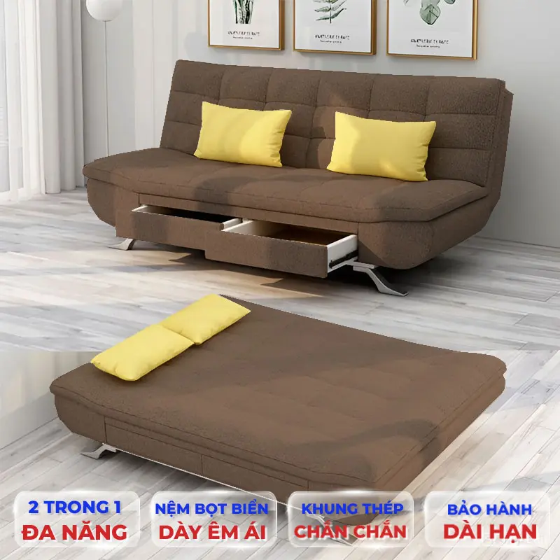 Ưu Điểm: Thiết kế hiện đại, nệm êm, khung giường chắc chắn, đa năng vừa làm ghế Sofa vừa làm giường ngủ