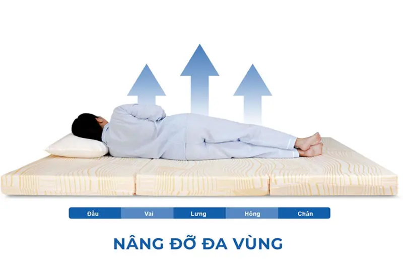 - Hỗ trợ cột sống: Được thiết kế để nâng đỡ cơ thể một cách tự nhiên, giúp giảm áp lực lên cột sống và duy trì tư thế nằm đúng cách.