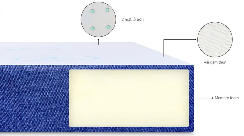 - Thoáng khí vượt trội: Thiết kế lỗ tròn giúp lưu thông không khí tốt hơn, giảm thiểu cảm giác bí bách khi nằm lâu.