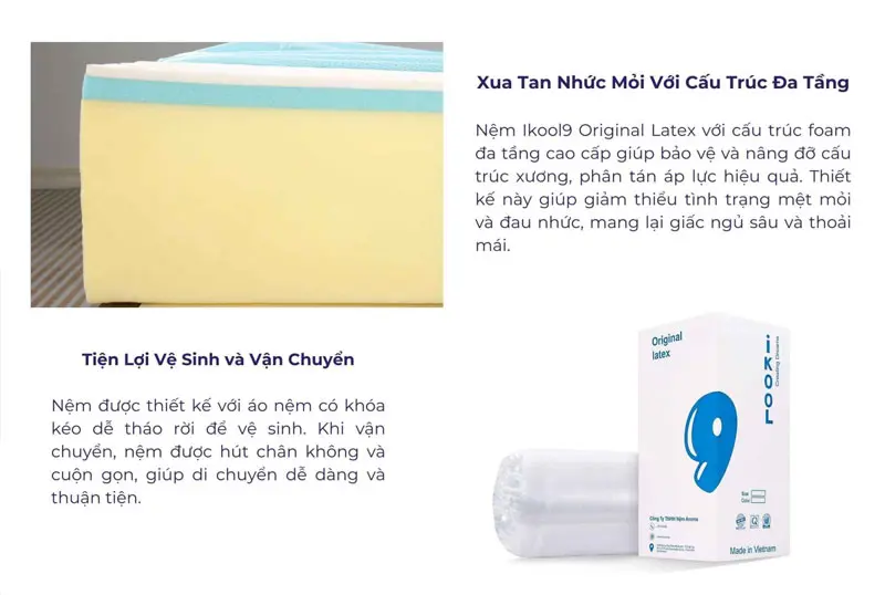 Nệm Ikool9 Original Latex là lựa chọn lý tưởng để bạn và gia đình có được giấc ngủ sâu, thoải mái và an toàn.