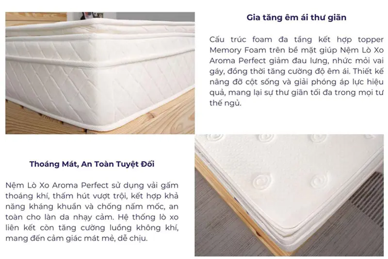 - Êm ái vượt trội: Lớp mousse cao cấp kết hợp với hệ thống lò xo tạo sự thoải mái tuyệt đối.