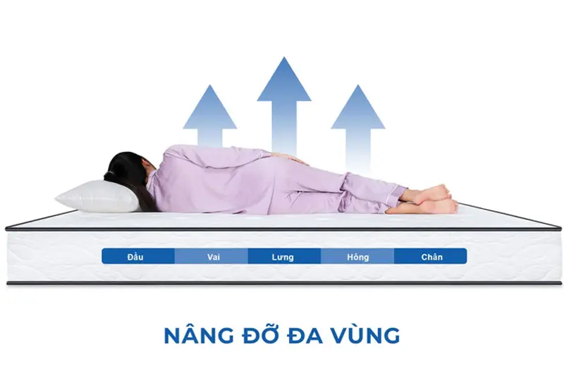 - Phân bổ lực tối ưu: Các lớp mousse và hệ thống lò xo phối hợp hoàn hảo để nâng đỡ cơ thể, hỗ trợ hệ xương khớp và giảm đau mỏi.