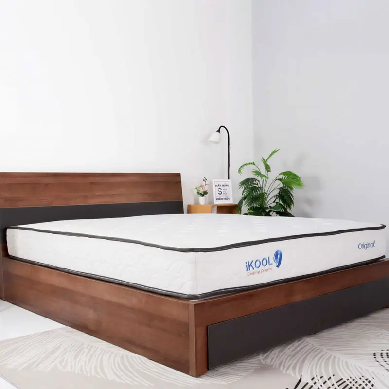 Nệm Lò Xo Túi Cuộn IKool9 Original sở hữu thiết kế hiện đại và tinh tế, kết hợp hài hòa giữa hai tông màu đen và trắng, lấy cảm hứng từ phong cách châu Âu. Viền nệm đen chắc chắn phối hợp với nền vải trắng sang trọng, tạo điểm nhấn đẳng cấp cho không gian sống. Cấu trúc hai viền được gia cố giúp tăng cường độ bền, trong khi các lớp mousse xếp chồng mang lại cảm giác êm ái vượt trội. Độ cao lý tưởng 23cm giúp nệm phù hợp với mọi phong cách nội thất.