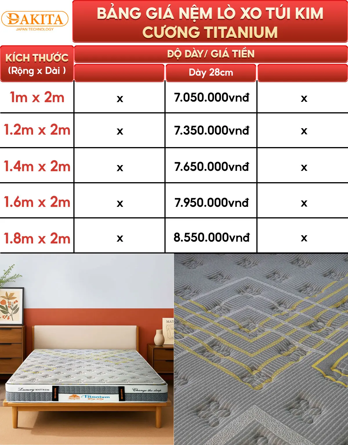 Cấu tạo nệm lò xo túi Kim Cương Titanium