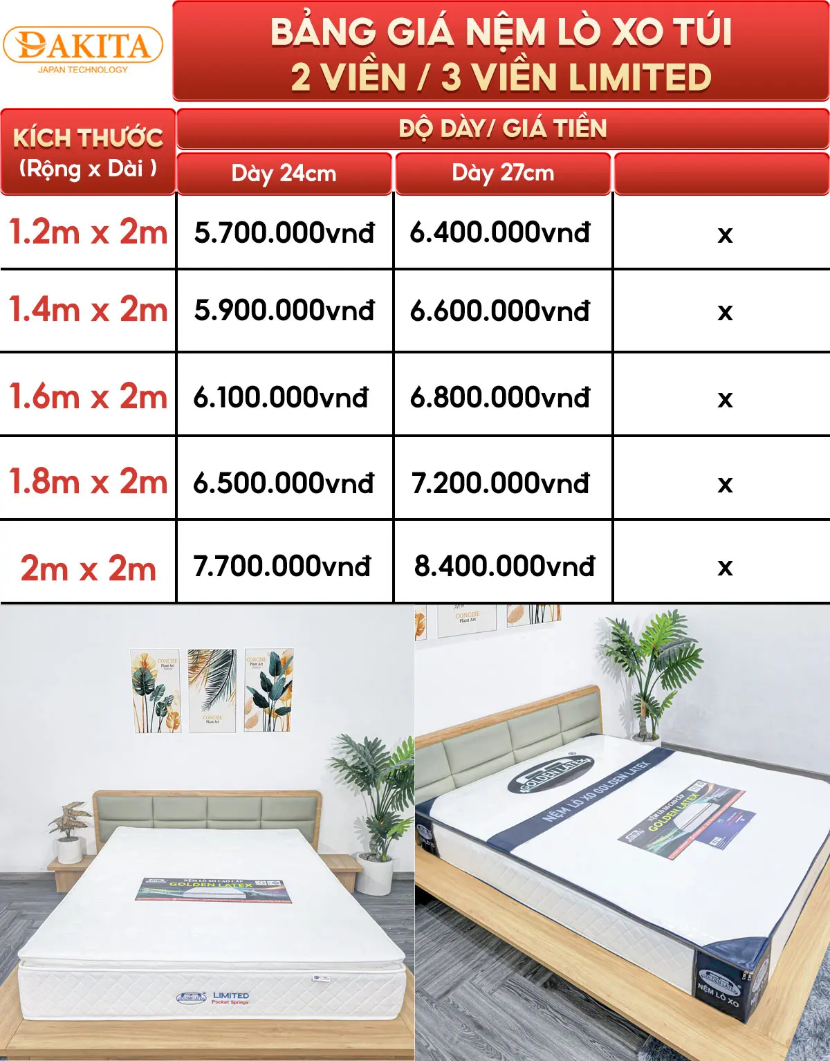 Giấc ngủ ngon không chỉ là kết quả của một ngày làm việc hiệu quả mà còn là yếu tố quyết định sức khỏe tổng thể của bạn. Hiểu rõ điều này, Golden Latex đã cho ra mắt dòng sản phẩm nệm lò xo túi độc lập Limited với độ cao 27cm, hứa hẹn mang đến cho bạn những trải nghiệm giấc ngủ thoải mái, êm ái và không bị làm phiền bởi bất kỳ tác động nào từ môi trường xung quanh.