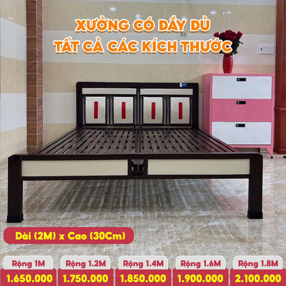 – Khung giường được làm bằng sắt sơn tĩnh điện bền đẹp không rĩ sét, không bi trầy xước khi va chạm