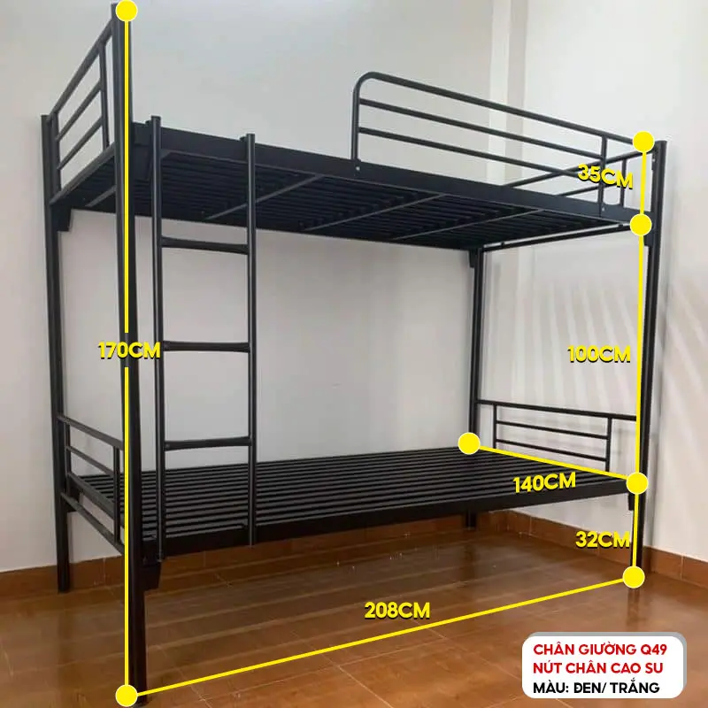 Giường sắt 2 tầng kích thước Cao 1.7m x Dài 2m x Rộng 1.6m