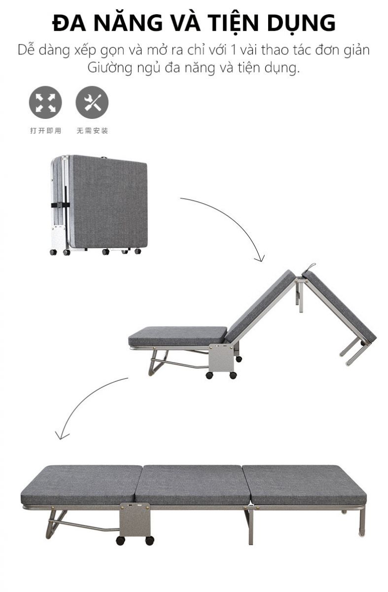 – Nhẹ, dễ sử dụng, đa năng, có thể vừa làm giường ngủ, vừa làm ghế ngồi, xếp gọn khi không sử dụng.