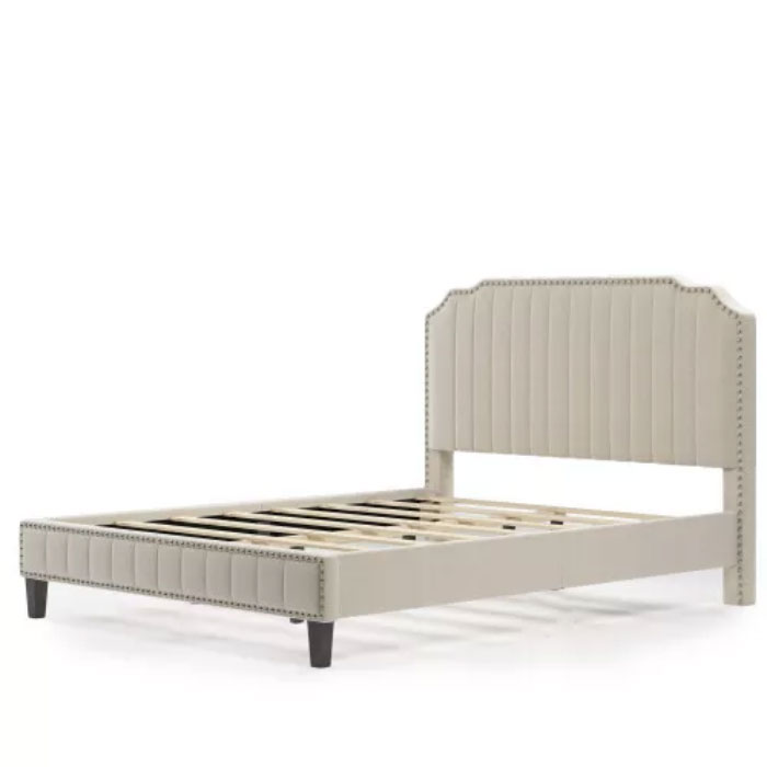 - Khung gỗ giường: Khung giường làm bằng gỗ thông nhập khẩu, dòng gỗ chuyên làm sofa hoặc giường bọc nệm vì có chất kháng mọt rất tốt