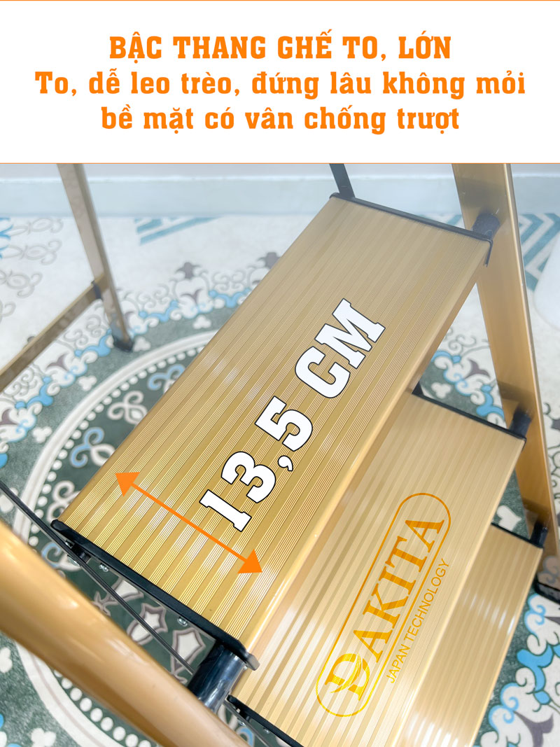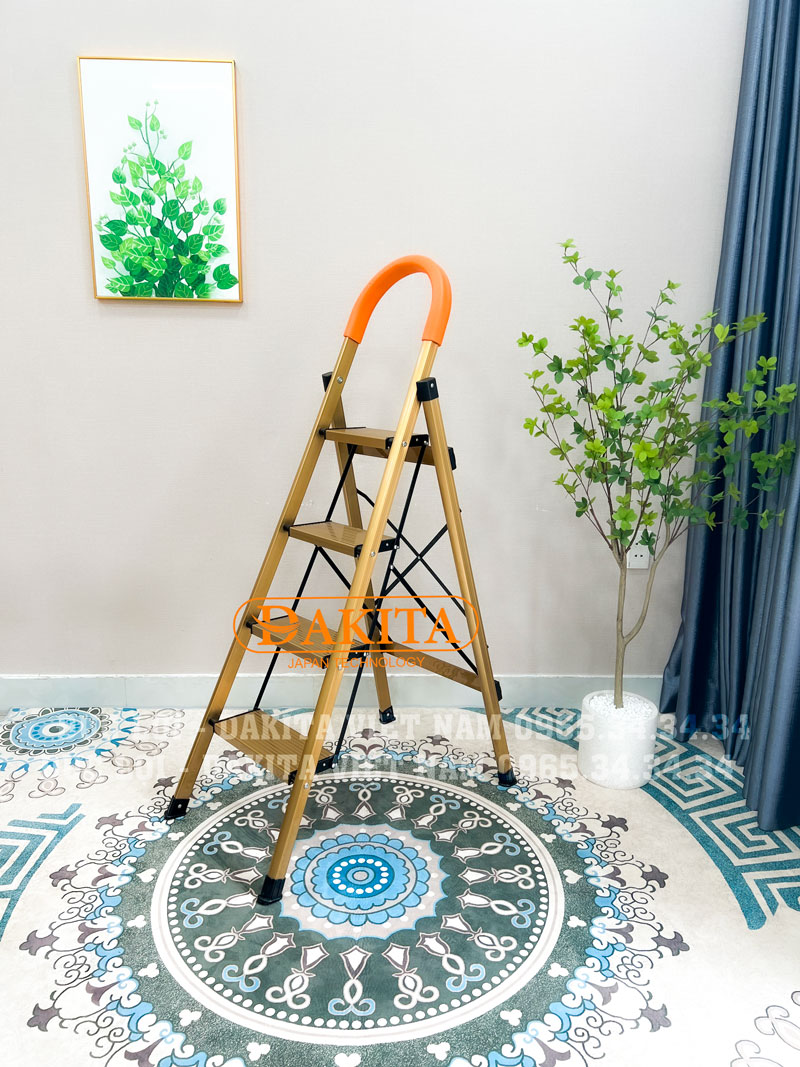 Tên sản phẩm: Thang Nhôm Ghế Tay Vịn Gold – Bậc Thang To Dễ leo Trèo, Thang Nhẹ Nhôm Dày Giá Rẻ
