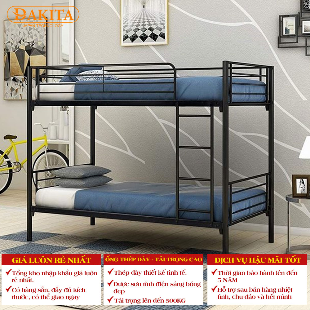 Giường sắt 2 tầng DAKITA đa dạng kích thước sẽ làm cho không gian phòng ngủ của bạn sẽ sang trọng và tiện nghi hơn. Bạn có thể thoải mái ngả lưng trên chiếc giường sang trọng mang lại cho bạn giấc ngủ sâu và thoải mái. Chiếc giường rất phù hợp với không gian ký túc xá và khu công nghiệp. Ngoài ra, bạn còn có thể chọn cho mình những mẫu nội thất văn phòng và gia đình đẹp.