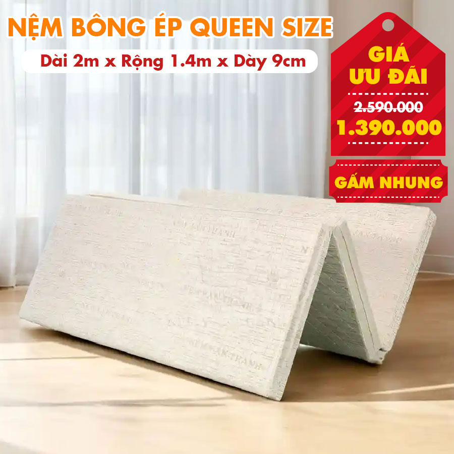 Nệm Bông Ép Queen Size – Màu Ngẫu Nhiên