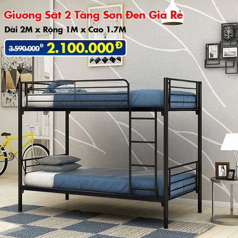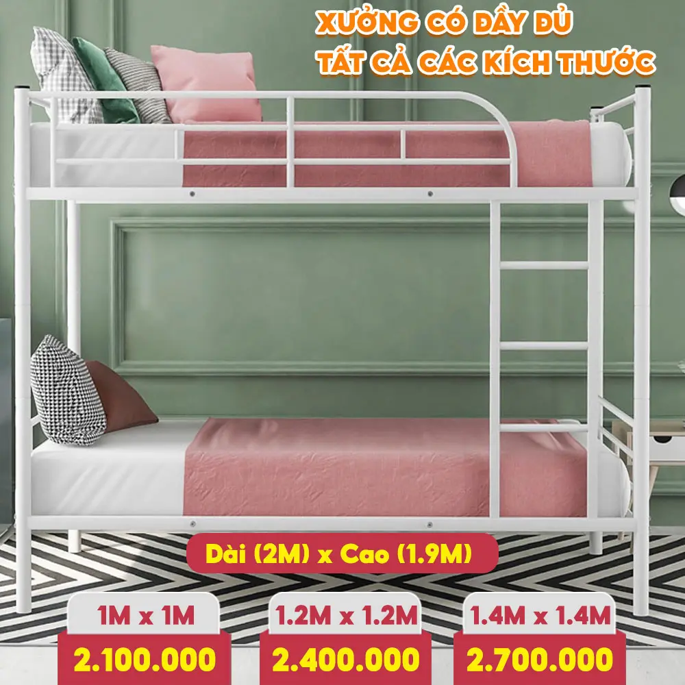 Giường sắt 2 tầng kích thước Cao 1.7m x Dài 2m x Rộng 1.6m