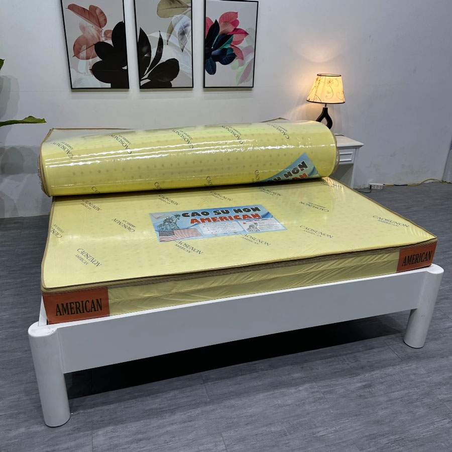 – Ruột nệm american cao cấp được sản xuất bằng chất liệu cao su tổng hợp, đúng tiêu chuẩn tạo ra những tấm nệm cao su american có độ êm ái và độ bền cao lên tới 10 năm.