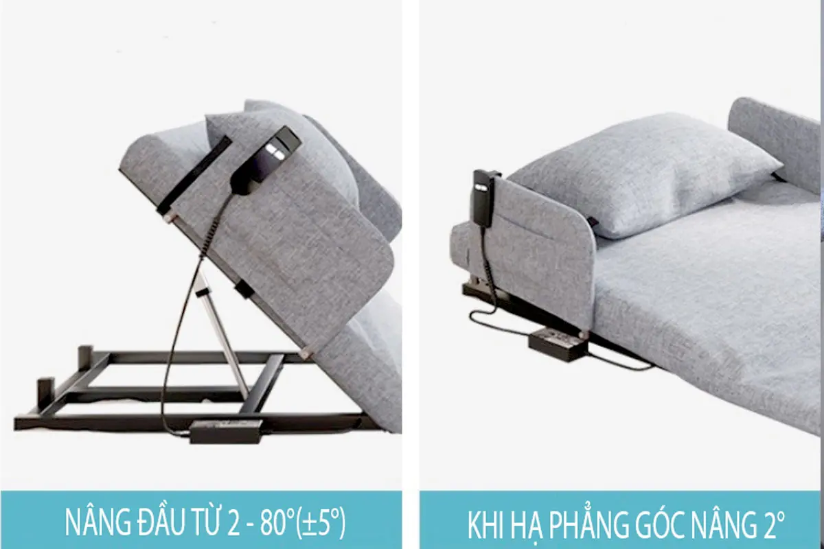 – Điều khiển từ xa cầm tay, thiết kế tiện lợi mang lại sự trợ giúp tốt nhất cho bệnh nhân. Tựa lưng giường nâng điện thông qua điều khiển Cho phép người dùng dễ dàng điều chỉnh vị trí của giường chỉ bằng một nút nhấn., tạm dừng góc chọn tùy ý, dễ dàng điều chỉnh góc thoải mái.