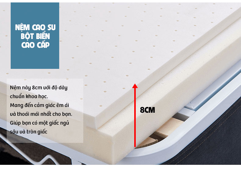 – Đệm chất liệu bọt biển cao cấp ( dày 8cm) chống xép lún