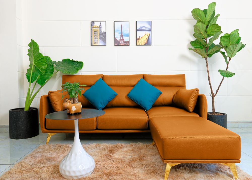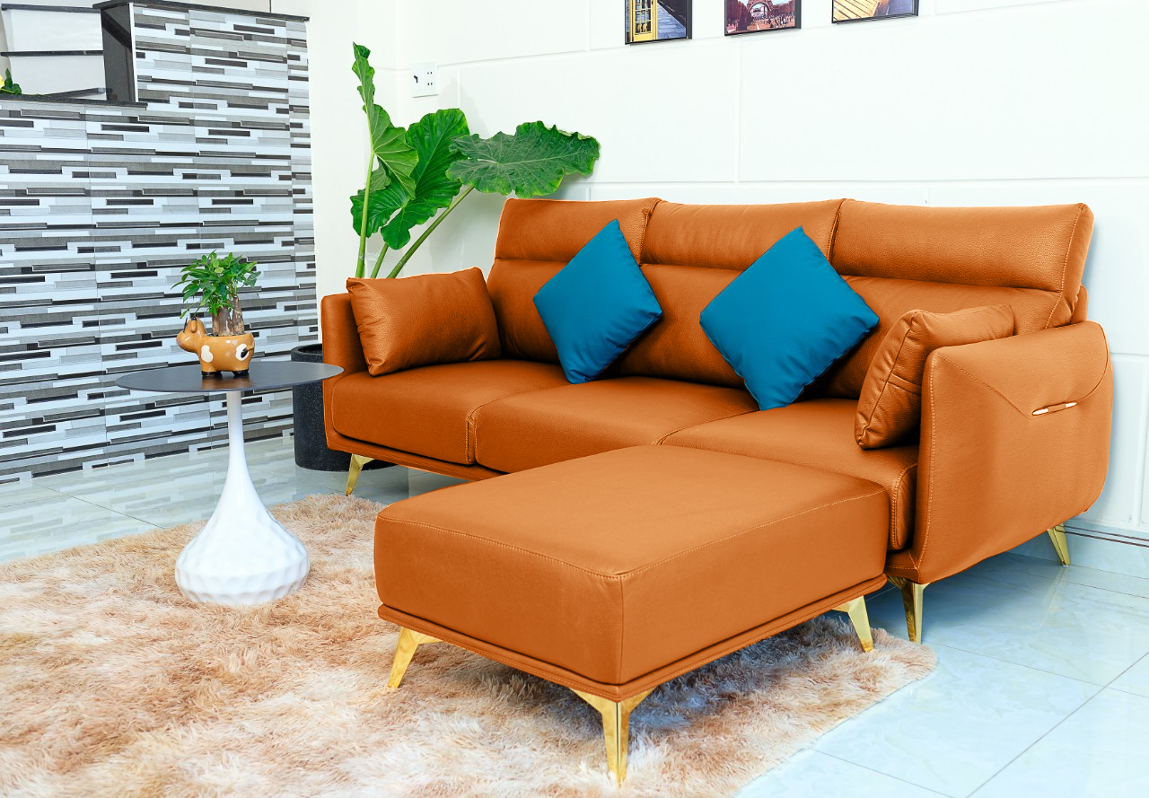 – Kiểu dáng: Ghế sofa băng có nhiều phần ngồi và tựa lưng, đi kèm đôn cao cấp