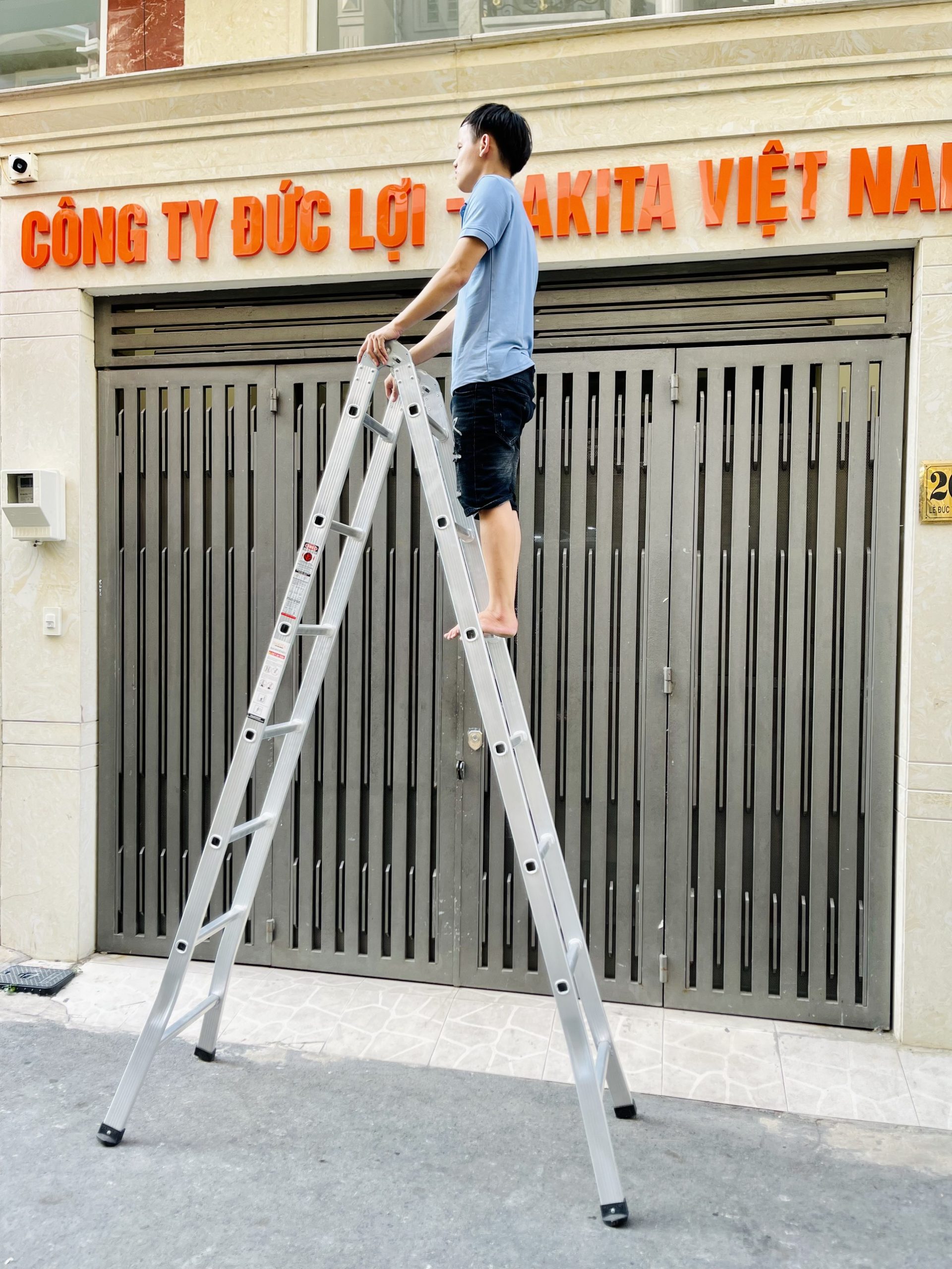 Kiểu dáng: Thang nhôm chữ A có khóa tự động đa năng, vừa sử dụng chữ A, vừa có thể duỗi thẳng chữ I