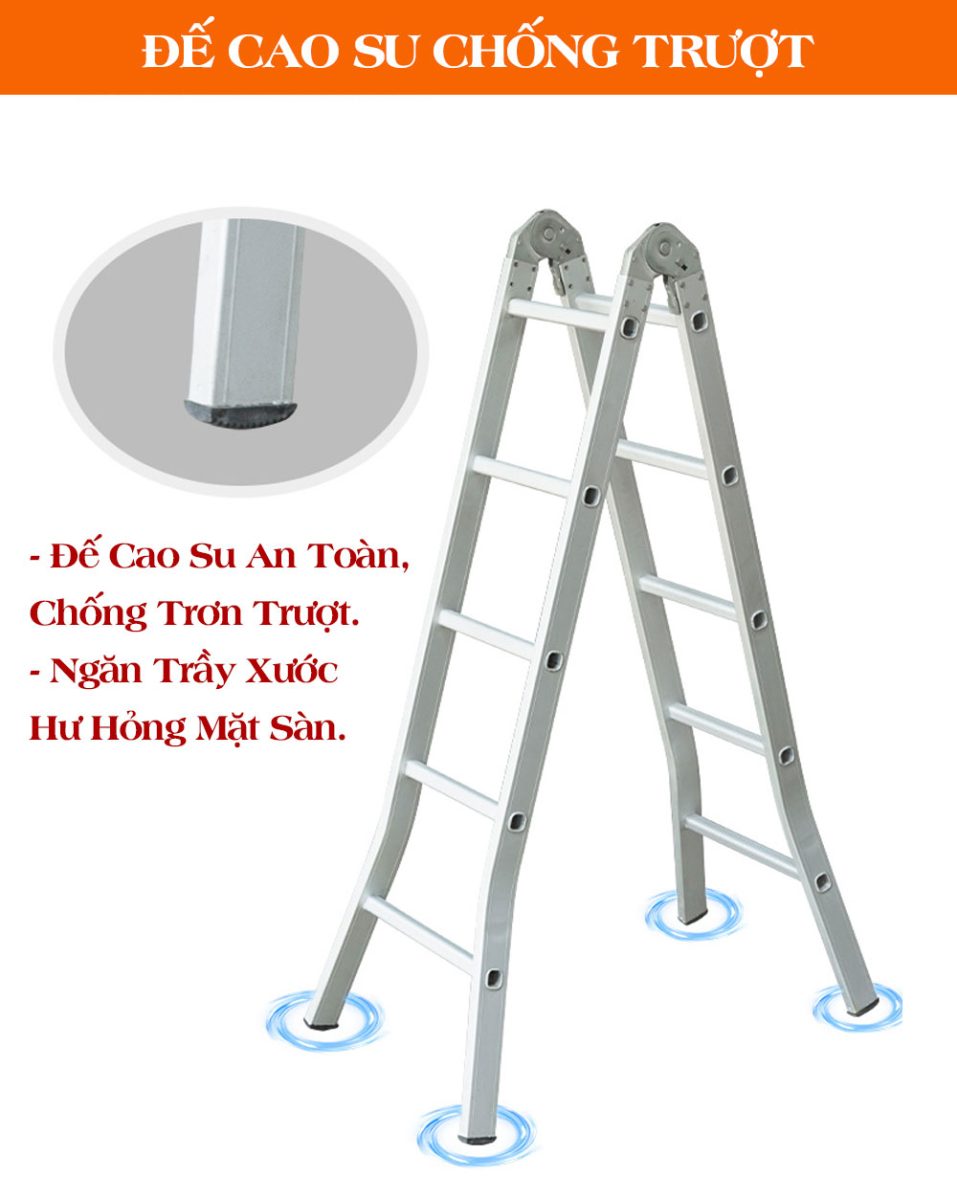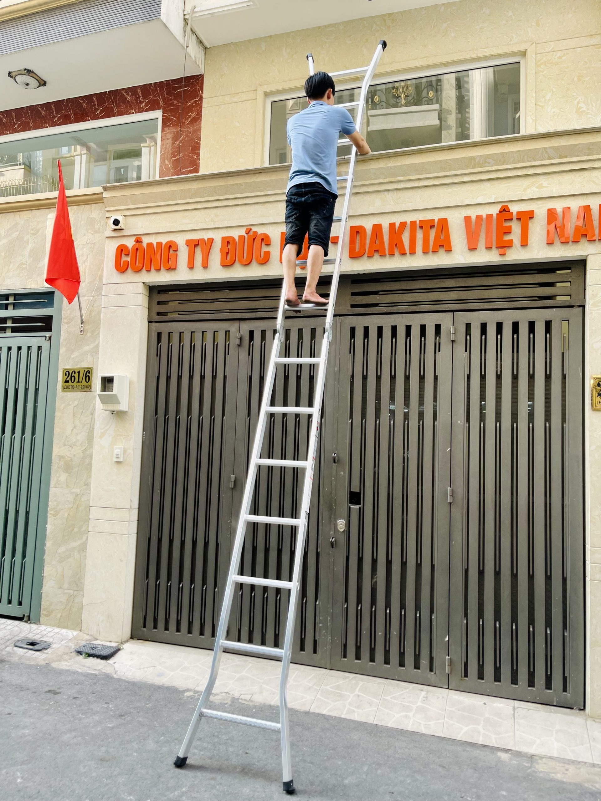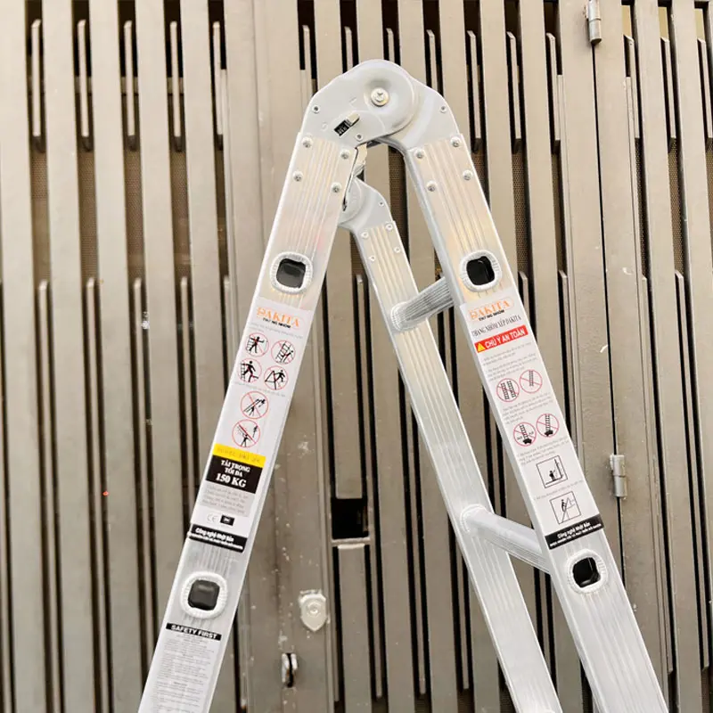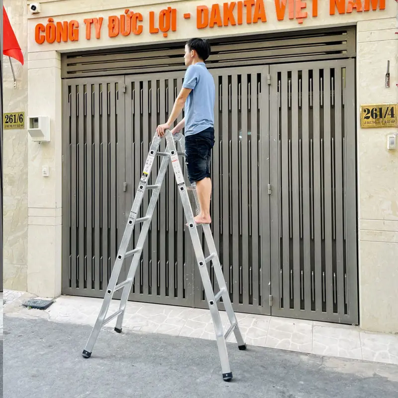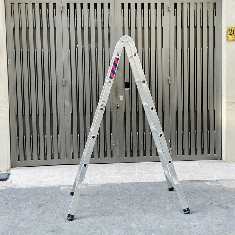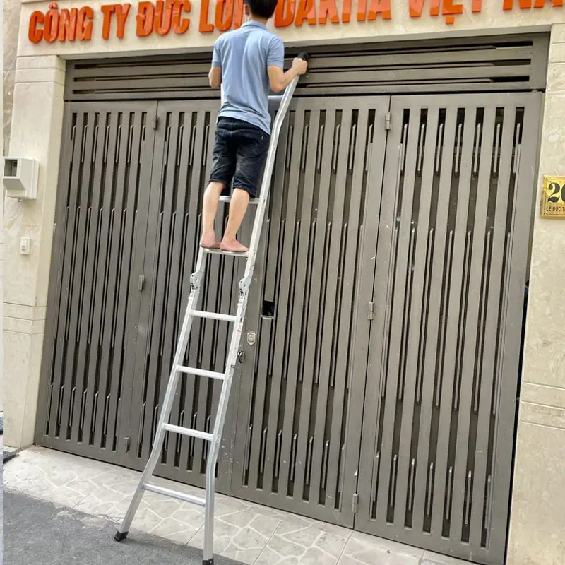 Kiểu dáng: Thang nhôm chữ A có khóa tự động đa năng, vừa sử dụng chữ A, vừa có thể duỗi thẳng chữ I