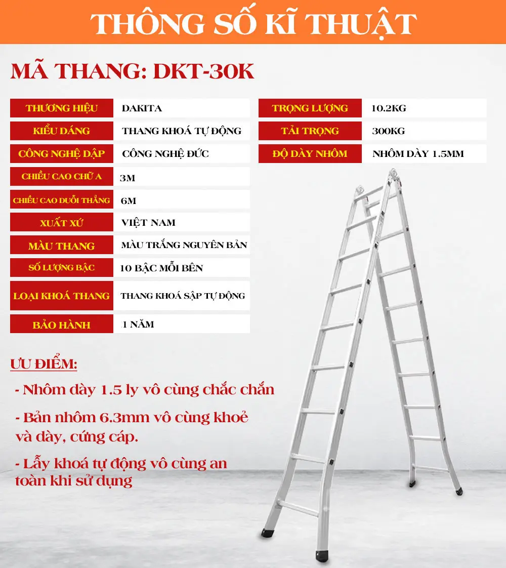 Tên sản phẩm: Thang Nhôm Chữ A Khóa Tự Động DAKITA DKT-30K