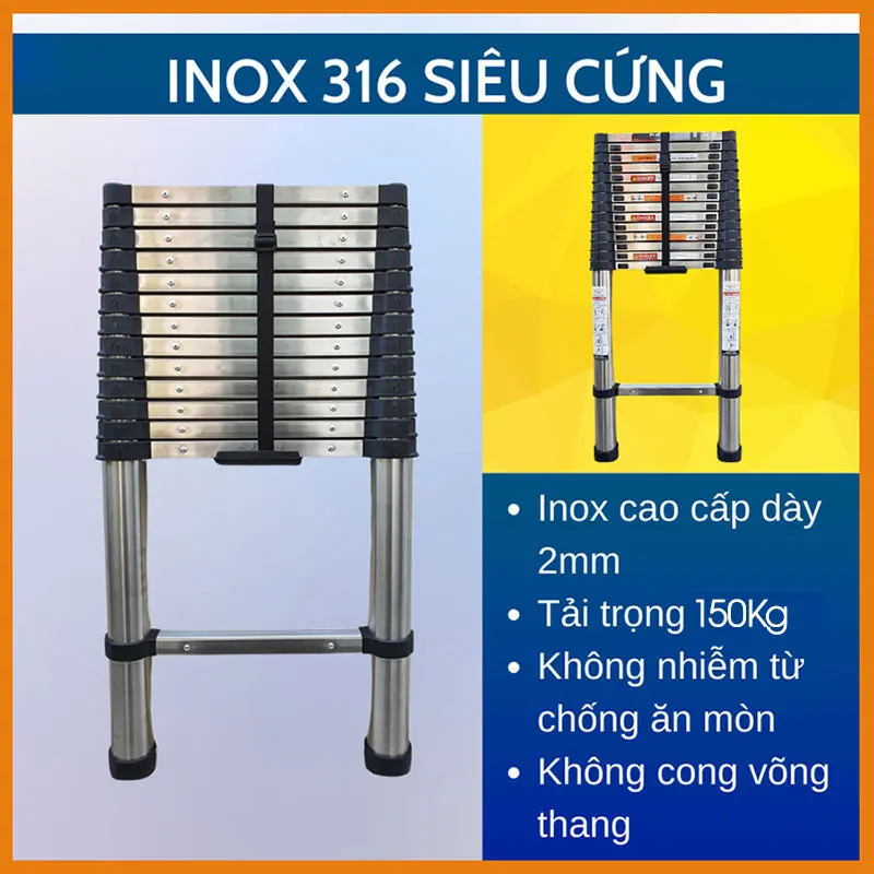 Kiểu dáng: Thang Inox rút đơn có khóa tự động ở mỗi bậc loại 15 bậc thang
