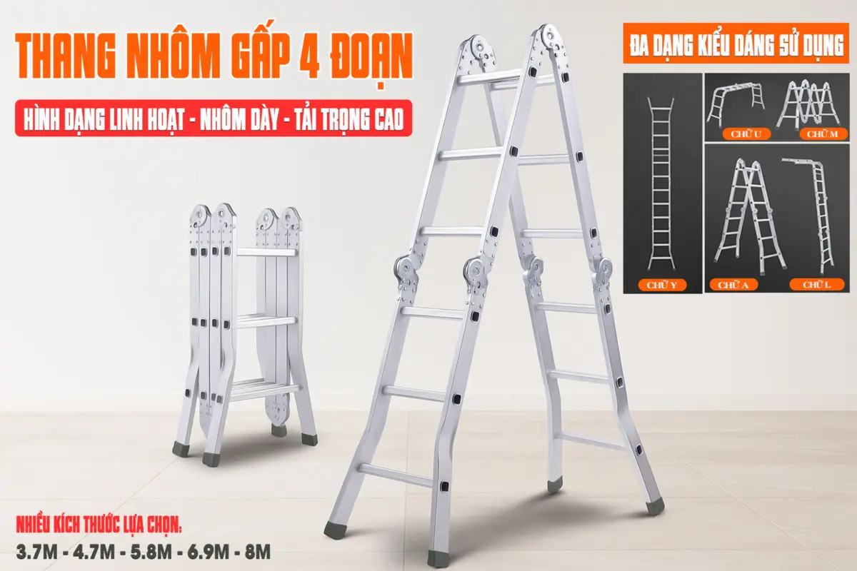 -22%DKT-77A (Chữ A 4m). Thang Nhôm Gấp 4 Đoạn DAKITA [THANG TỐT GIÁ RẺ NHẤT]