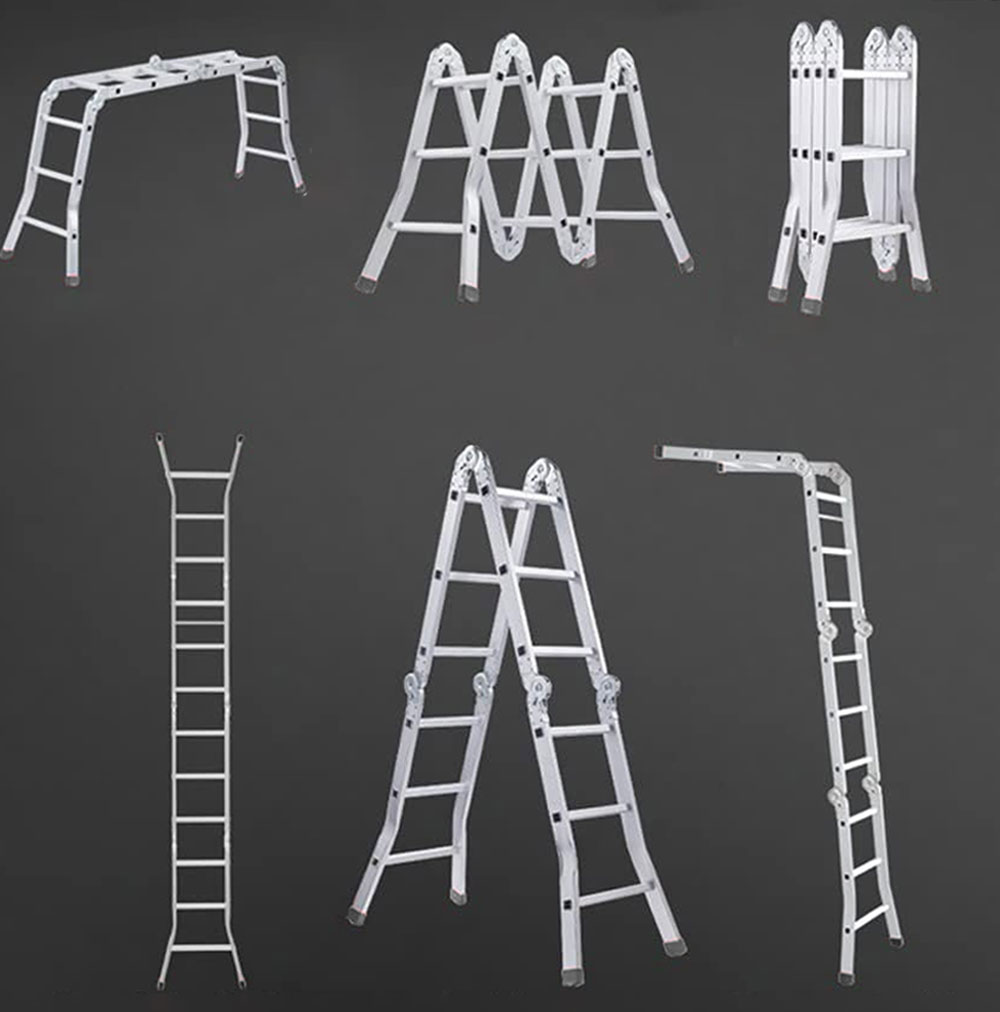 Kiểu dáng: Thang nhôm gấp làm 4 đoạn, sử dụng được nhiều kiểu dáng: chữ A, duỗi thẳng chữ I, chữ M, U, L. Xếp gọn khi không sử dụng.