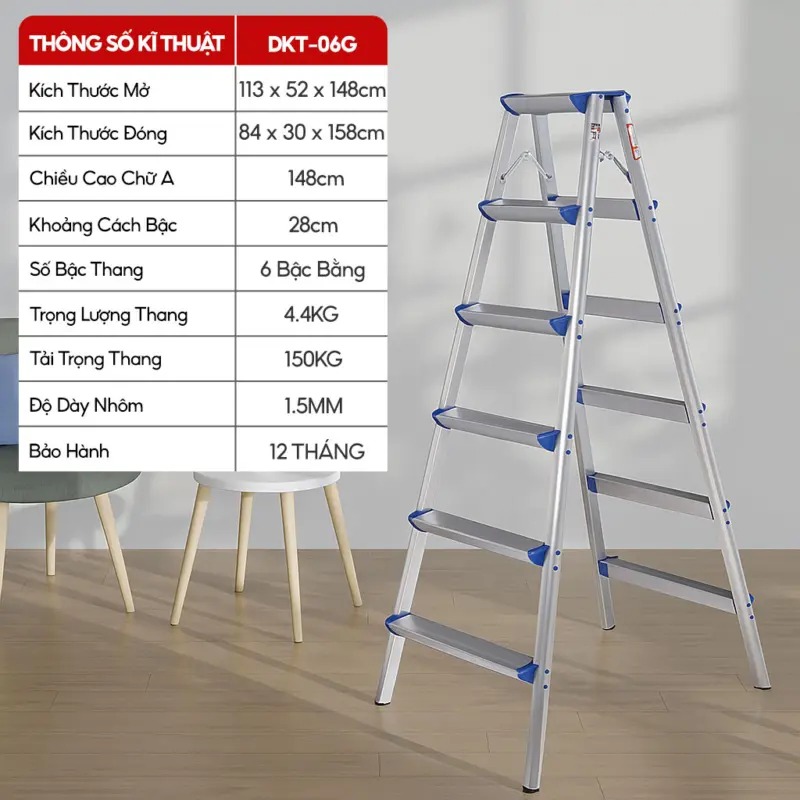 THÔNG SỐ KĨ THUẬT THANG GHẾ NHÔM DKT-06G