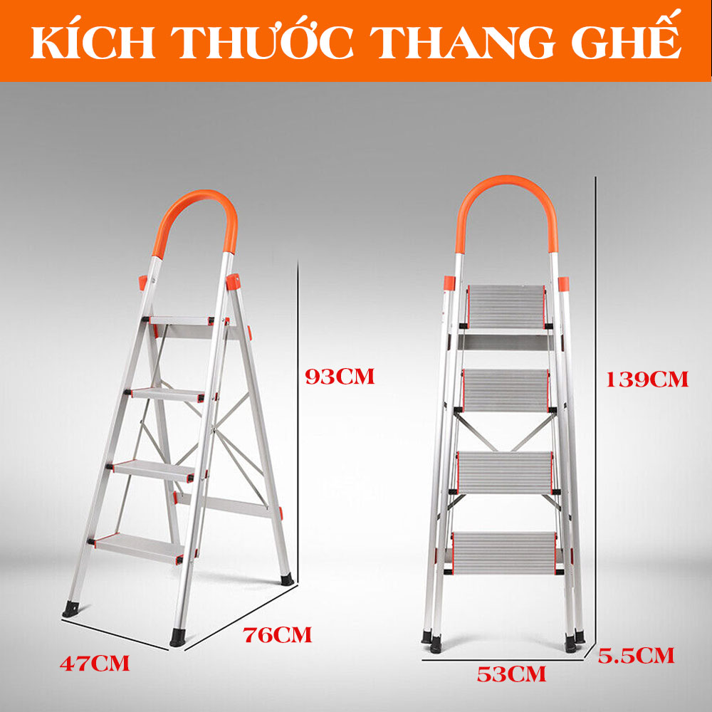 Tên sản phẩm: Thang Nhôm Ghế Tay Vịn Trắng – Bậc Thang To Dễ leo Trèo, Thang Nhẹ Nhôm Dày Giá Rẻ