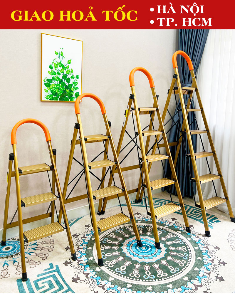 Tên sản phẩm: Thang Nhôm Ghế Tay Vịn Gold – Bậc Thang To Dễ leo Trèo, Thang Nhẹ Nhôm Dày Giá Rẻ