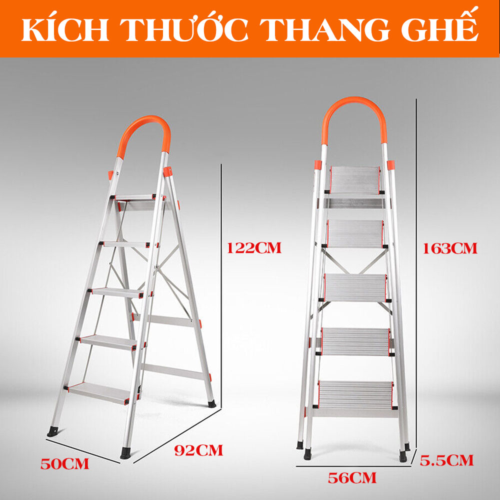 Tên sản phẩm: Thang Nhôm Ghế Tay Vịn Trắng – Bậc Thang To Dễ leo Trèo, Thang Nhẹ Nhôm Dày Giá Rẻ