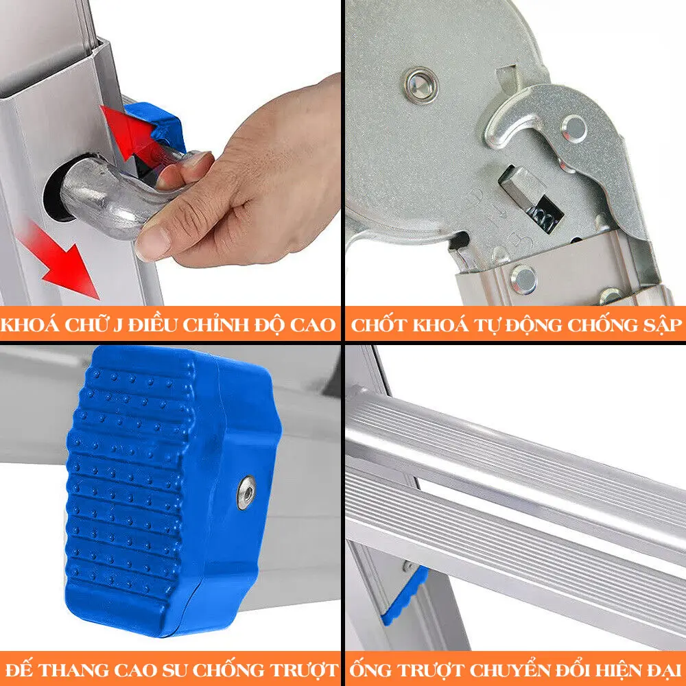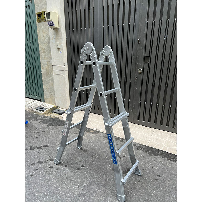 Kiểu dáng: Thang nhôm rút trượt loại 3 bậc mỗi bên, sử dụng được nhiều kiểu dáng: chữ A, duỗi thẳng chữ I. Xếp gọn khi không sử dụng.